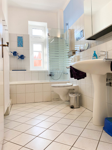 Unsere größte Ferienwohnung ist ca. 140m² groß und für den Urlaub mit Freunden oder der Familie für bis zu 8 Personen geeignet. Die Schlafzimmer sind sehr großzügig (min. 20m²) angelegt. Der große Balkon zur Südseite des Hauses lädt zum Frühstücken oder/und zum Sonnen ein. Aus einem der Fenster haben Sie einen Blick Über den gesamten Obstbetrieb bis hin zum Elbdeich, wo große vorbeifahrende Container- und Kreuzfahrtschiffe zu sehen sind.| Größe: 140m² | Zimmeranzahl: 7 | Maximale Belegung: 8 |