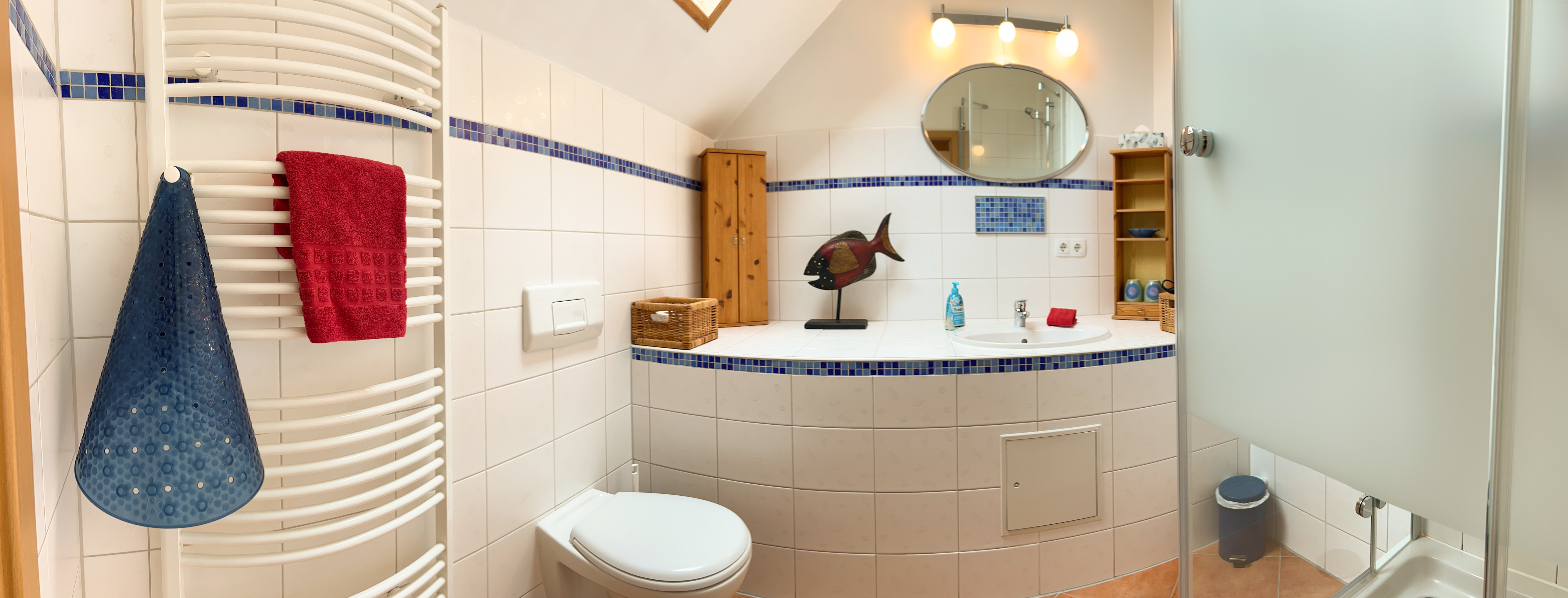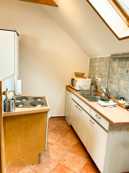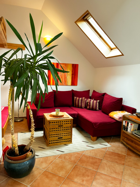 Die Ferienwohnung Zauberhaft befindet sich im Obergeschoss und ist etwa 40m² groß. Sie ist durch einen schmalen und etwas steileren Treppenaufgang inkl. Kindersicherung erreichbar. Durch fünf große Dachfenster kommt Sonne im Übermaß ins Innere. Die Wohnung ist mit einem Doppelbett mit der Breite von 1,60m und einem Hochbett für eine Person ausgestattet (besonders geeignet für Kinder). Daher ist diese Wohnung besonders für kleinere Familien und und/oder sportlichen Feriengästen bestens geeignet. Die Fenster im Dach können während der Nacht abgedunkelt werden. Für Gäste mit Gehbehinderungen empfehlen wir unsere ebenerdigen Ferienwohnungen - Hundertschön, Herbstprinz sowie Augenweide.| Größe: 40m² | Zimmeranzahl: 2 | Maximale Belegung: 2/3 |