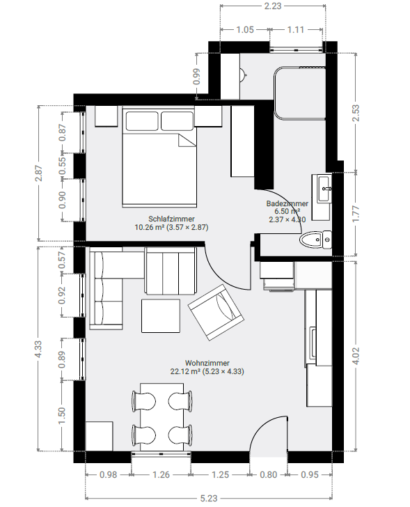 | Größe: 40m² | Zimmeranzahl: 3 | Maximale Belegung: 3 |